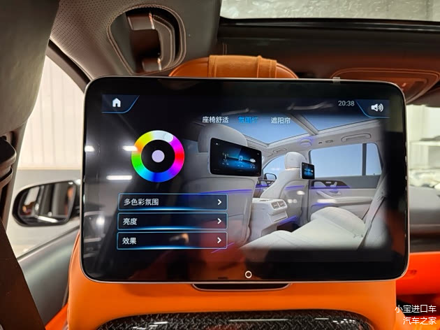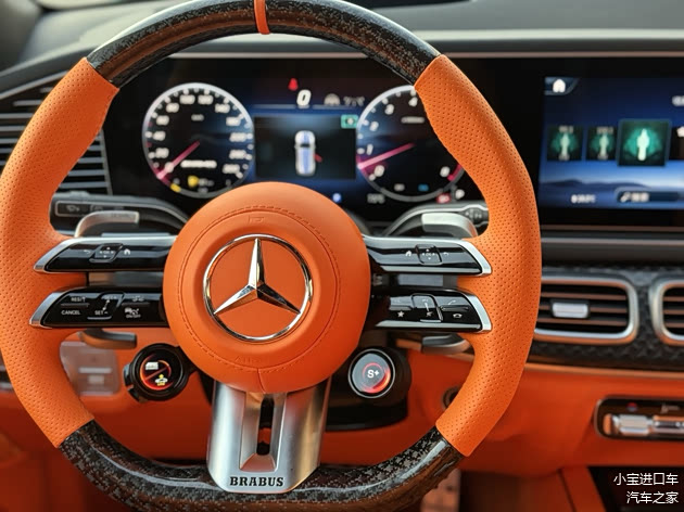 全车柏林之声音响金属材质音响罩,后排出风口镀铬工艺,二排遮阳帘按键,原厂五键底升级按键,后排娱乐,巴博斯logo四门镭射灯,巴博斯红色发动机罩,巴博斯油门刹车踏板,隐藏式主副驾驶腰部支撑,带有巴博斯LOGO的迎宾门槛条,巴博斯红色刹车卡钳罩,巴博斯定制款全包脚垫以及地毯,抬头显示,高清晰度后排娱乐带有控制氛围灯座椅调节遮阳帘四屏联动功能。