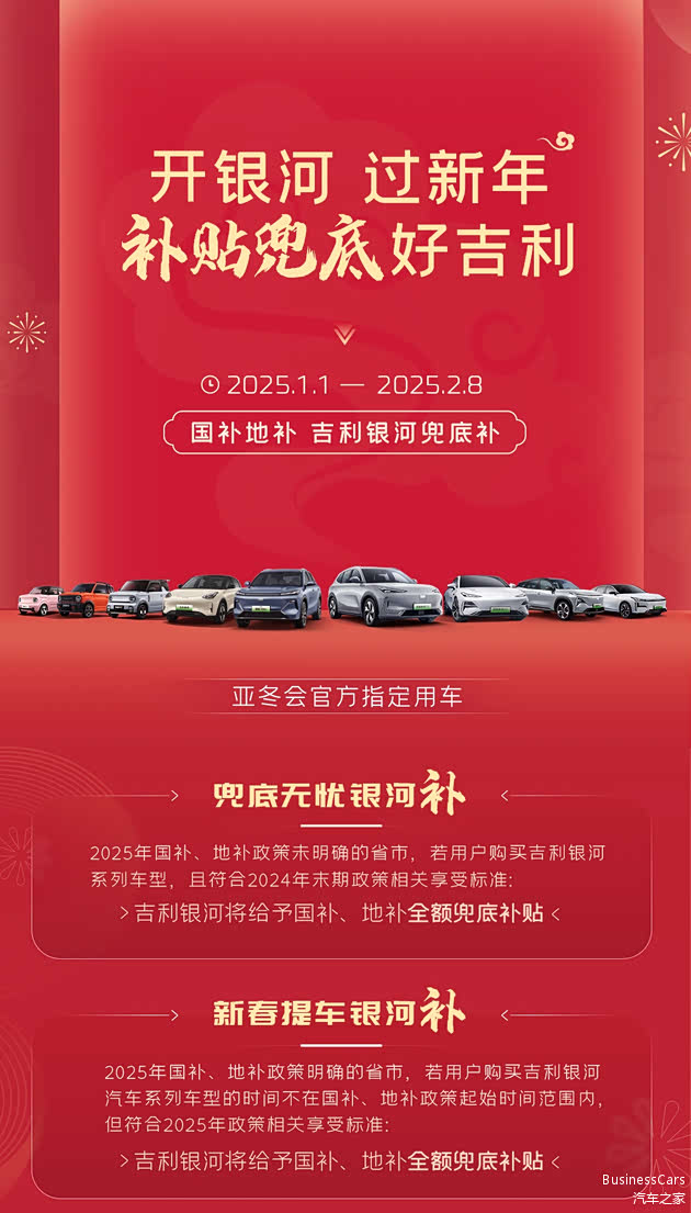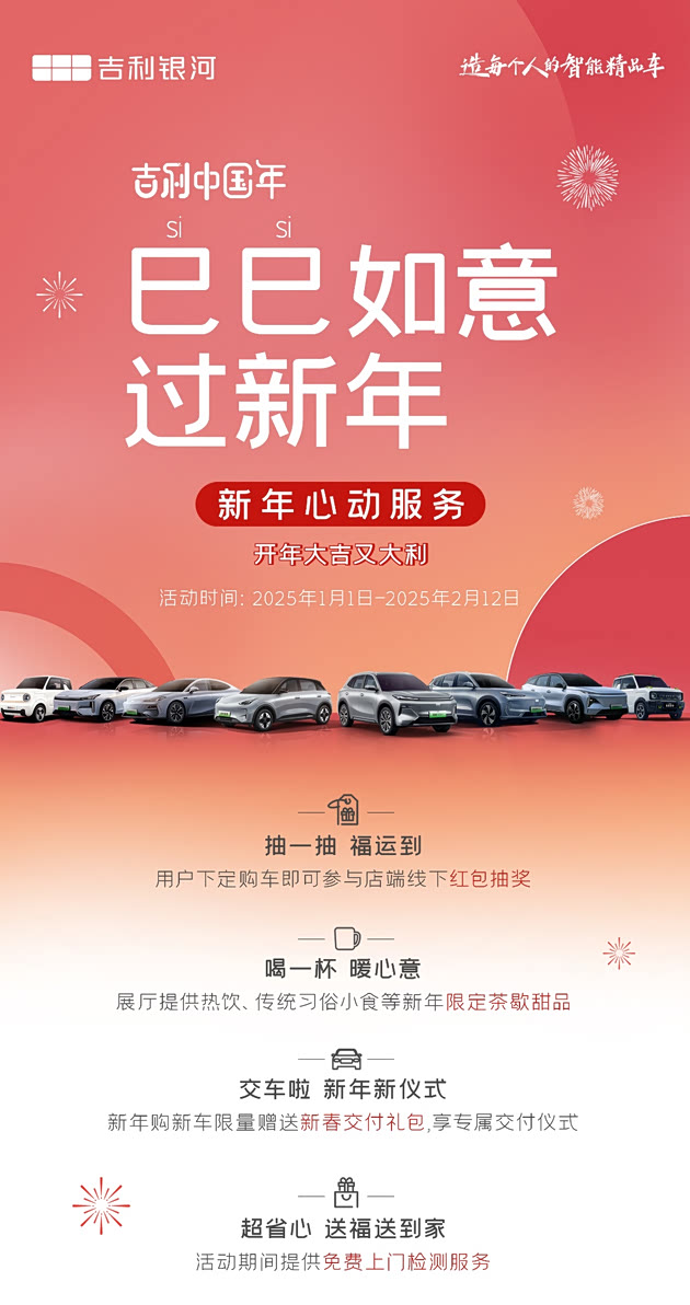 总之,吉利银河凭借其卓越的产品力、领先的技术实力以及贴心的服务体验,在2025年迎来了一个充满希望与挑战的新起点。随着更多新品的发布和技术的迭代升级,吉利银河有望在新的一年里再创佳绩,为中国乃至全球新能源汽车产业的发展贡献更大的力量。