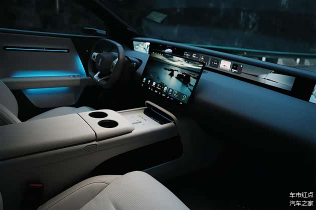 另外,还可以看到悬浮式中控屏,参考阿维塔07的尺寸是15.6英寸。还有上下平底的方向盘和隐藏式空调出风口设计,整个中控台比较简洁,但很有科技感。