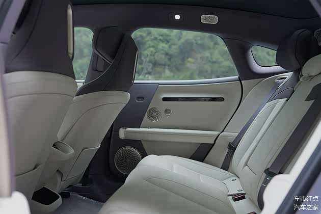 前排中央扶手箱采用了镂空设计,拓展了储物空间。面上一层有双杯架和两个带通风功能的手机无线充电面板,扶手箱顶盖采用了左右双开设计。
