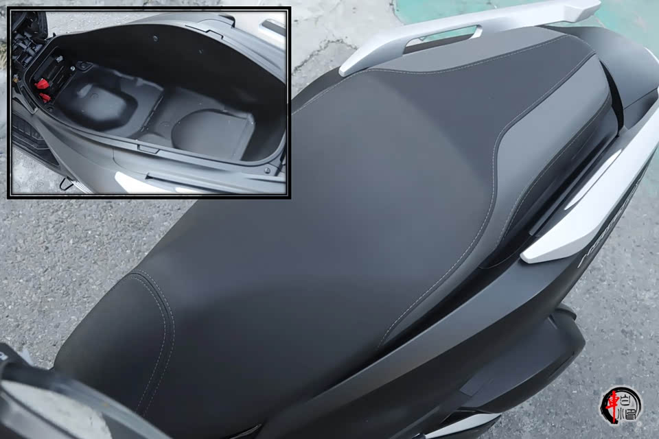底盘硬件方面,NS150GX实用性表现出色。前封闭式手套箱可存放随身物品,并内置双USB充电接口。30L坐桶空间可轻松容纳全尺寸头盔。前后悬架组合能有效过滤路面震动,提供平稳舒适的骑行体验。刹车系统采用前后盘刹,标配双通道ABS和TCS牵引力控制系统,提供全面安全保护。