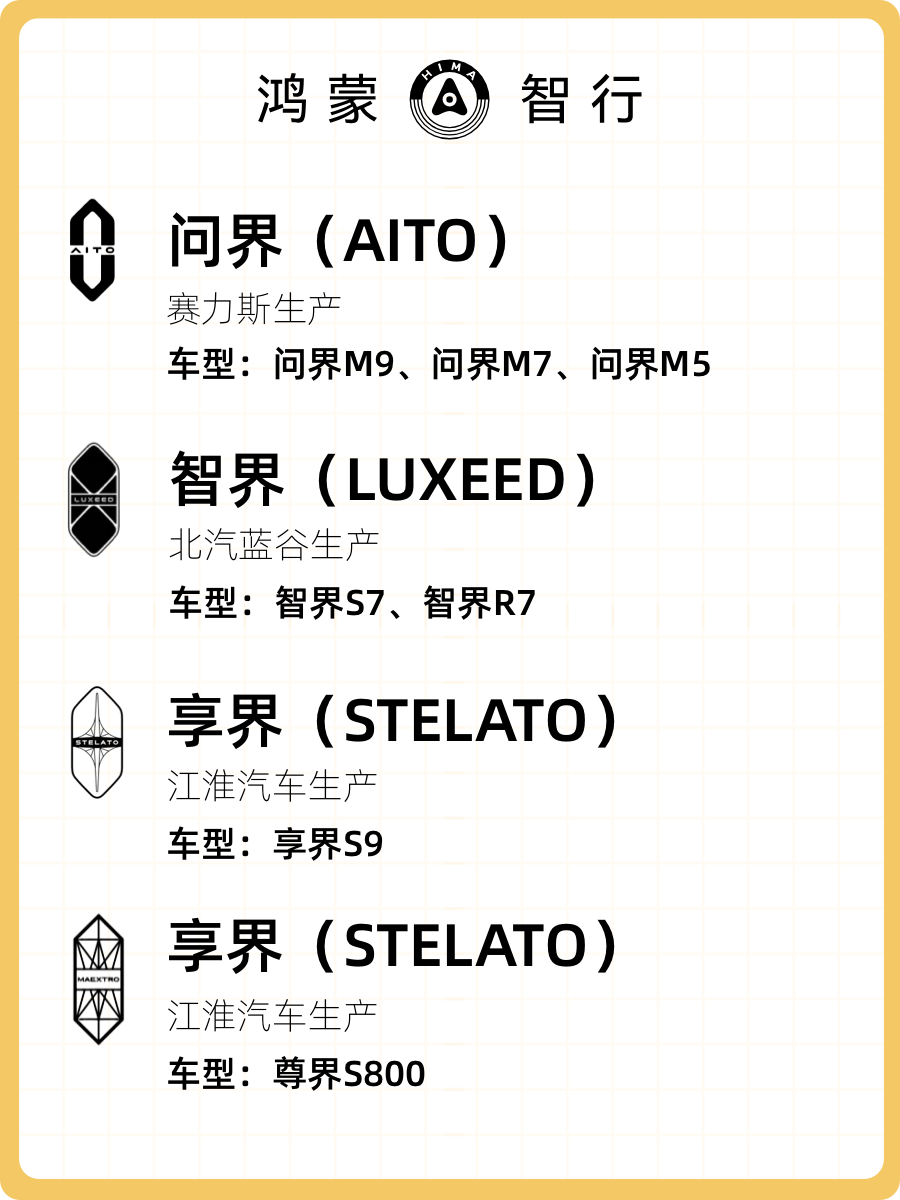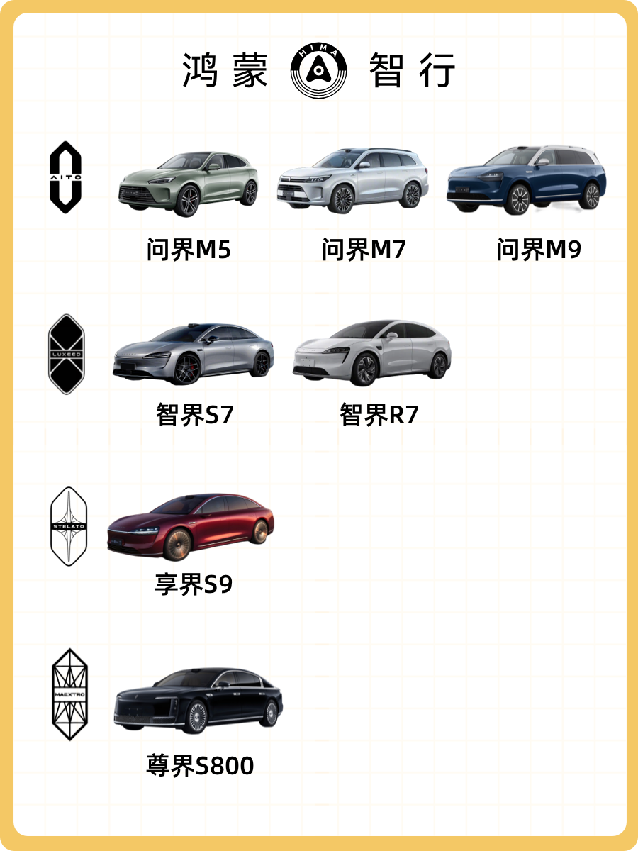 智界S7:中大型电动轿车,搭载华为高阶智能驾驶系统。