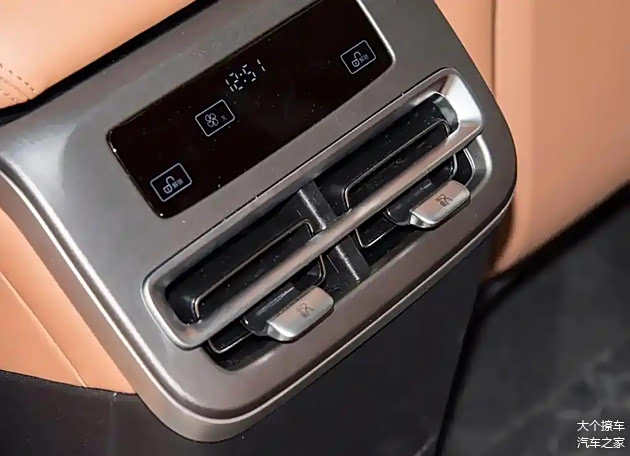 除了出风口,后排的地台还配备了一个小显示屏,用于调整空调的温度和风量。