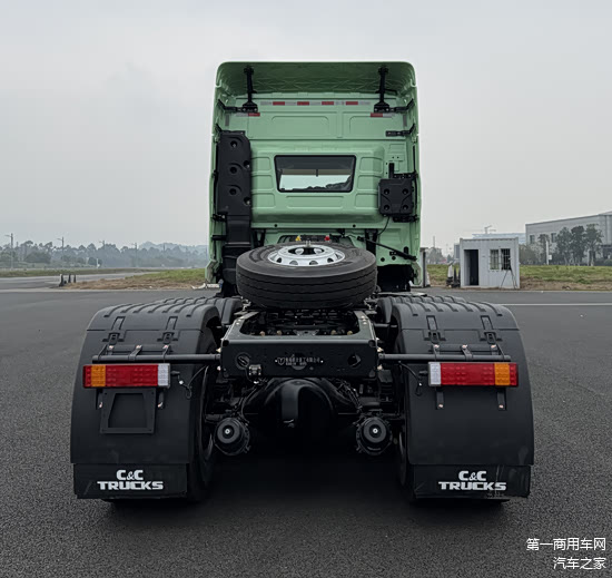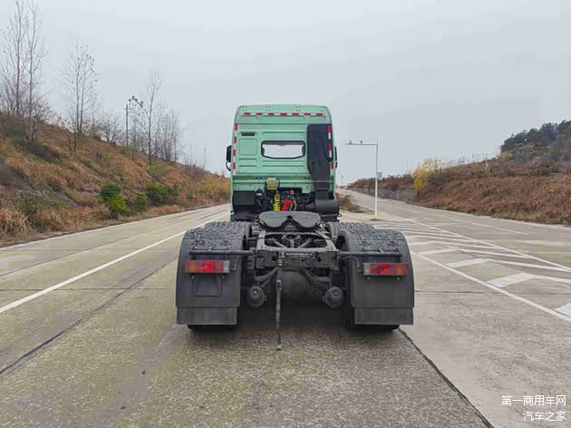 该车外形尺寸长为7510mm,宽为2400/2450/2500/2530/2540/2550mm,高为3450/3500/3550/3600/3650/3700/3750/3800/3850/3900mm,整车可根据用户需求配装不同规格的驾驶室。该车轴距为3800+1350mm,钢板弹簧片数(前/后)为2/3或3/4或4/5或5/6或8/10或9/12。该车驱动形式为6×4,整备质量8.87吨,准拖挂车总质量40吨,半挂车鞍座最大允许承载质量为16吨,轮胎规格为12R22.5 18PR。动力方面,其配套的甲醇发动机来自汉马科技,发动机型号为GS14M510H-61,最大输出510马力。