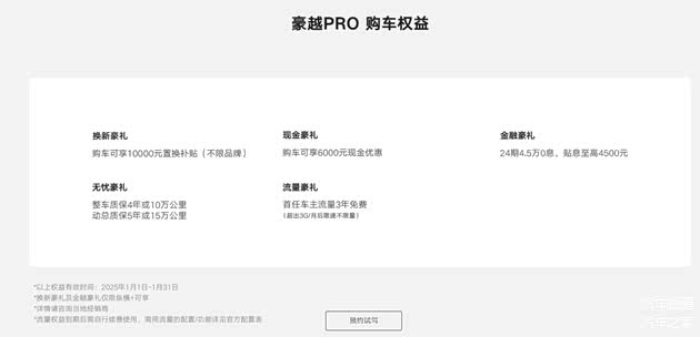 总之,吉利豪越 PRO 安全可靠、颜值出众、动力强劲、智能丰富,购车政策和质保贴心,全方位满足家庭出行需求,绝对是家庭买车的不二之选!打算买车的家人们,可千万别错过豪越 PRO!