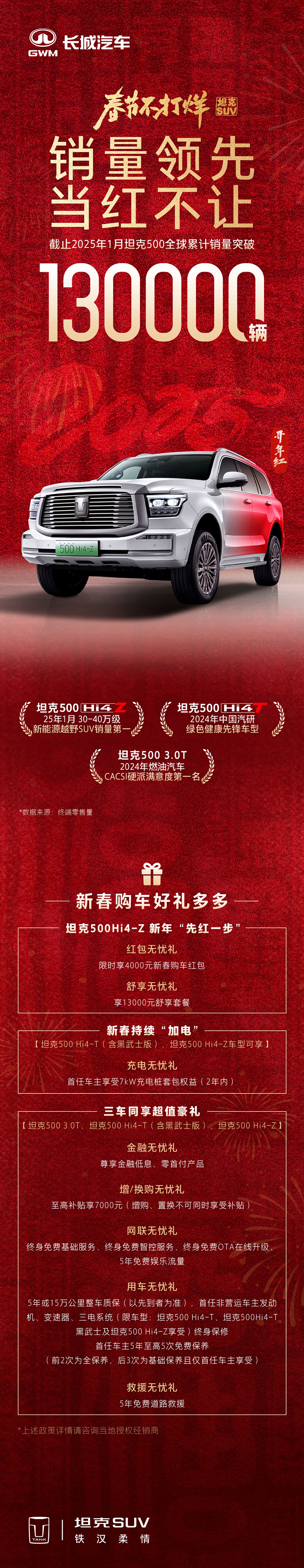 销量领先当红不让!坦克500全球累计销量突破130000辆 春节不打烊!新春购车豪礼多多,即刻下订先红一步! #坦克500Hi4-Z一定红 #开年红一定红