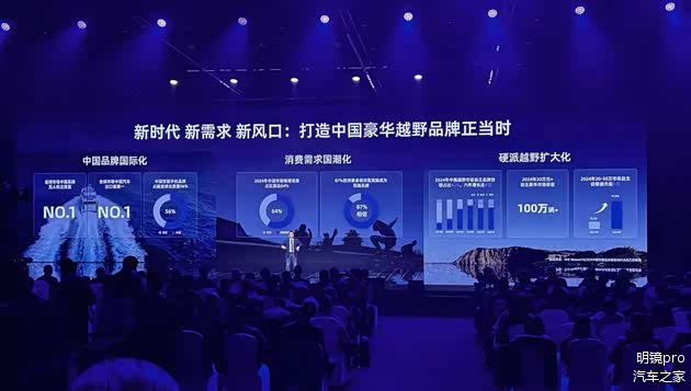 这一次捷途选择押注豪华越野市场,主要有两方面原因。首先是自主豪华品牌崛起,2024年售价30万元以上的自主豪华卖出100万多辆。其中,30-50万元的豪华车市场的份额从2021年10.3%提升到了2024年41.8%。与此同时,近几年硬派越野市场迎来销量大幅增长,其中自主品牌的销量增速更高。在2024年,中国越野市场自主品牌份额占比达到了92%,6年增长了近4倍。基于这种市场情况捷途李学用判断,打造中国豪华越野品牌正当时。