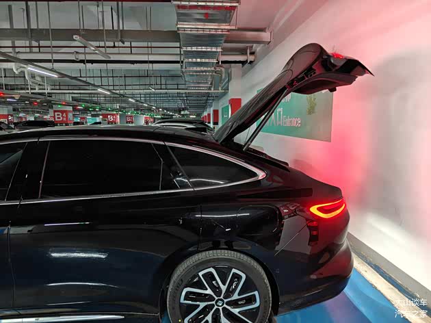 车身尾部,新车贯穿式的尾灯组加入熏黑外罩,点亮后颇具辨识度和未来感。尾厢盖上方还有隆起的小鸭尾式扰流板,看上去更具运动气息。包围底部则采用双色设计,细节之处还还辅以镀铬装饰进行点缀,进一步提升车辆的精致感。更值得一提的是新车还采用了掀背式尾门设计,可以大大扩展车辆的装载空间。