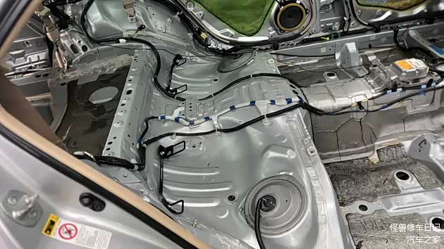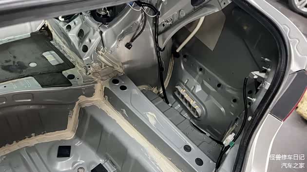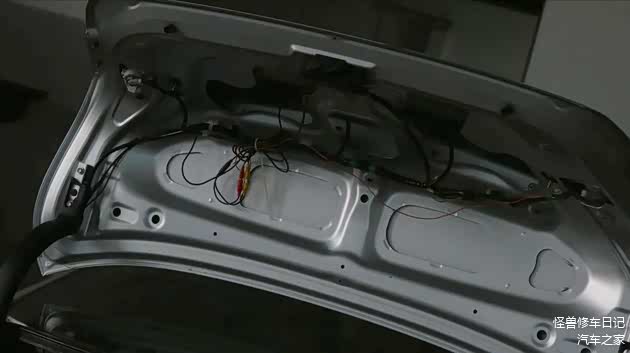 之前车主改过一个导航大屏,拆开后备箱盖子,里面线束一塌糊涂。