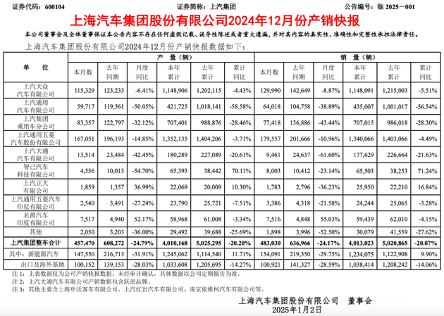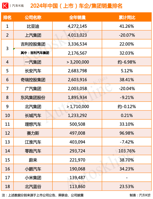 直至年末,上汽集团年度销量业绩定格在401.3万辆,同比下滑20.07%,回到2011年水平,成为《汽车K线》统计在册的18家中国(上市)车企中,2024销量下降最严重的一家。
