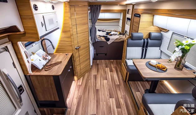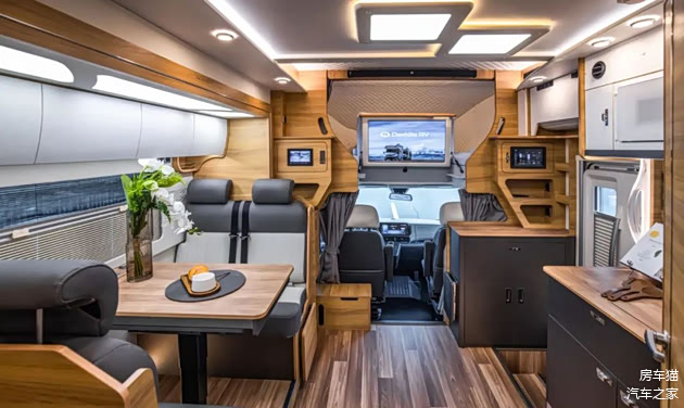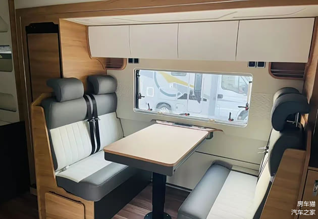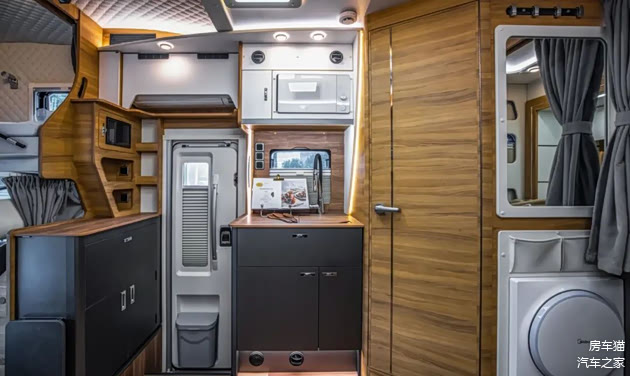 内饰设计方面,戴德T8驭风双拓展房车以豪华舒适为主基调。车厢内部采用了双拓展经典的空间布局,车头为驾驶室+额头床,车厢中部为会客区以及厨房区,车辆尾部为卫生间以及尾置拓展横床。车厢两侧均设有储物吊柜,方便用户分类存放各类生活物品。内饰风格简约而不失温馨,大量使用了米白色板材与皮质饰面,营造出自然纯粹与返璞归真之态。