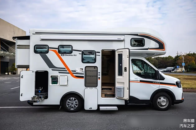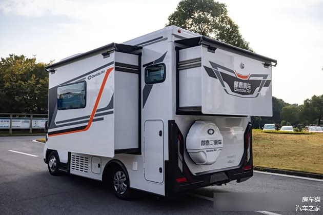此外,车辆还配备了外置抽拉厨房、房车专用遮阳棚+LED灯带等实用性设施,以及尾部贯通式储物舱,满足了长途旅居的行李存放需求。