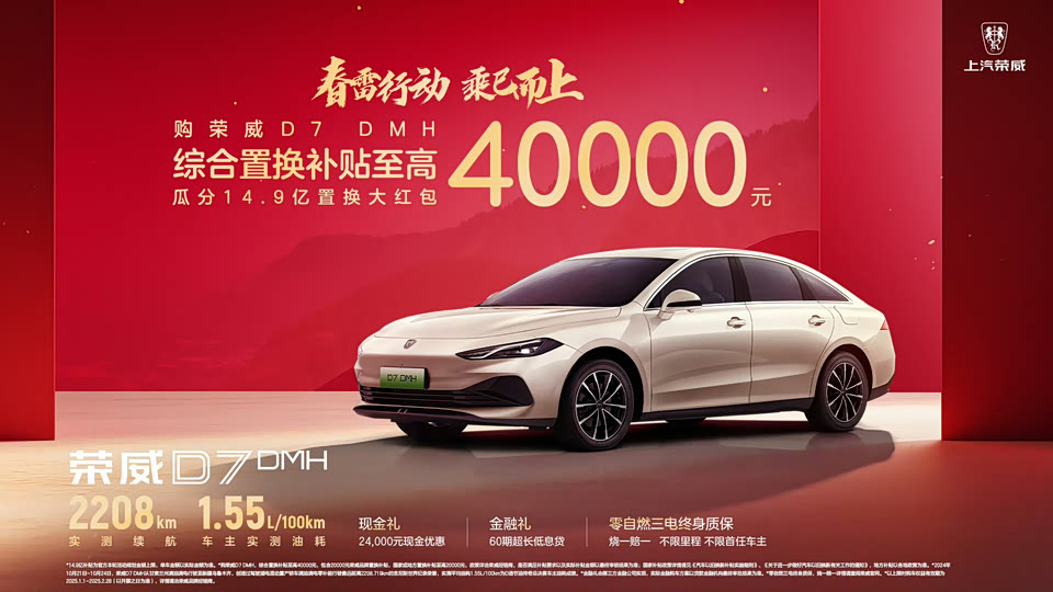 随着新能源汽车产业的蓬勃发展,技术创新与用户回馈成为了推动市场前行的驱动力。消费者已逐渐摆脱对繁复配置和高溢价形象的迷恋,转而注重高价值、高品质的追求。正值2025年新春之际,上汽荣威春雷行动,乘巳而上,瓜分14.9亿置换大红包,以满足用户的购车需求!
