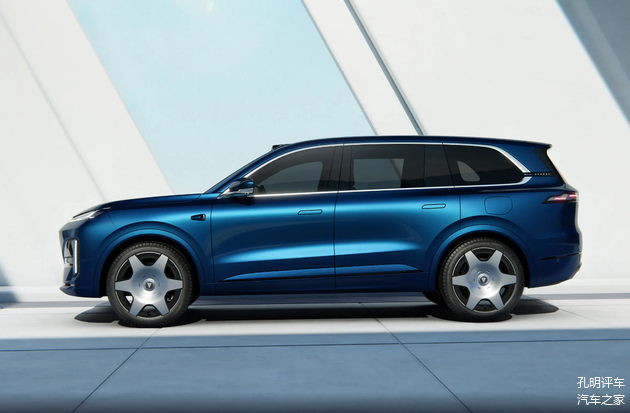 本身大尺寸就带来了外观上的压迫感,气场已经很强,所以这次深蓝S09车型的外观设计并不复杂,像这种大尺寸SUV设计简简单单就比较舒服了。车头前脸灯光细节上还是保持了家族辨识度,而且延伸出了分体灯光和獠牙造型。车身侧面整个车顶和车身腰线都很平直,而且提供了比较凸显高级感的大饼轮毂。