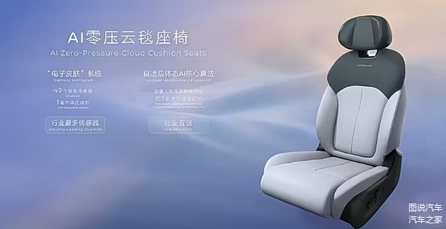 除了智能座舱、高通8295P芯片、momenta智驾等智能化系统外,“沙发厂”依旧在自己的“老本行”领域大做文章。N7将搭载AI零压云毯座椅,该座椅将配备49个传感器,组成电子皮肤系统,实时精准反馈,对座椅背部、腰部、腿部进行调整,提升舒适感。此外,该座椅还首创自适应体态AI算法,通过学习、OTA升级等,提供最舒适的坐姿。而座椅的用料则采用了东风日产自研的凝脂材质,该材质具有极高舒适性。