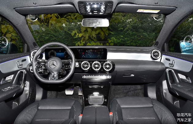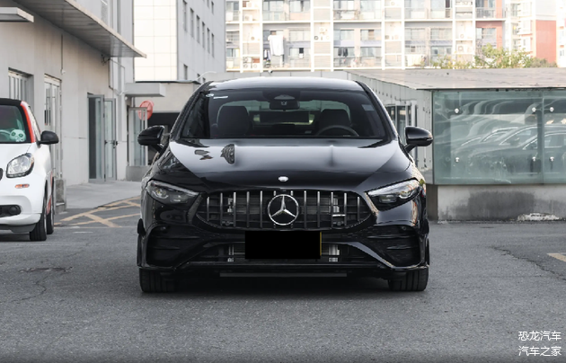 在外观方面,国产 奔驰A级 AMG均为三厢版,保留了AMG系列特有的直瀑式六边形格栅设计,两侧LED大灯带有AFS随动转向,可以在夜间行车时提供良好的观察视野。前包围采用宽大的“哑铃状”导风槽设计,外加两侧纤细的熏黑风刀来看,既提升了外观的运动感,也对车身梳理气流有一定帮助。车身侧面的线条和奔驰A级标准版保持一致,换上了熏黑五芒星运动轮圈,搭配车尾双边双出排气布局,以及前后短悬调校的低趴姿态,营造出奔驰A级本该有的运动腔调。