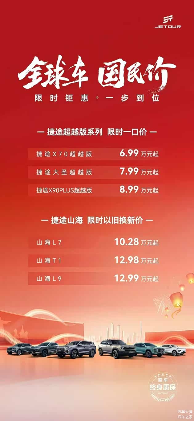除此之外,捷途、星途以及iCAR都推出了一口价车型或以旧换新的政策,其中捷途X70推出超越版车型,限时一口价6.99万,捷途X90 PLUS超越版一口价8.99万,直降1.6万,要知道这款车还是一台搭载1.6T发动机的中型SUV,裸车价不到9万,应该是只有捷途敢这么做了,同样的,捷途山海系列以旧换新价10.28万元起,关键是还可以叠加享受国家补贴2万元(至高),比之前的量大管饱又要更进一步。