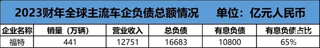 福特的情况也不乐观,福特有息负债约1.08万亿元,占总负债的65%。在市场竞争这么激烈的当下,福特要想在电动化、智能化这些领域追赶,需要大量资金投入,可这高额负债让它有点力不从心啊,每走一步都得小心翼翼,生怕资金链出问题。