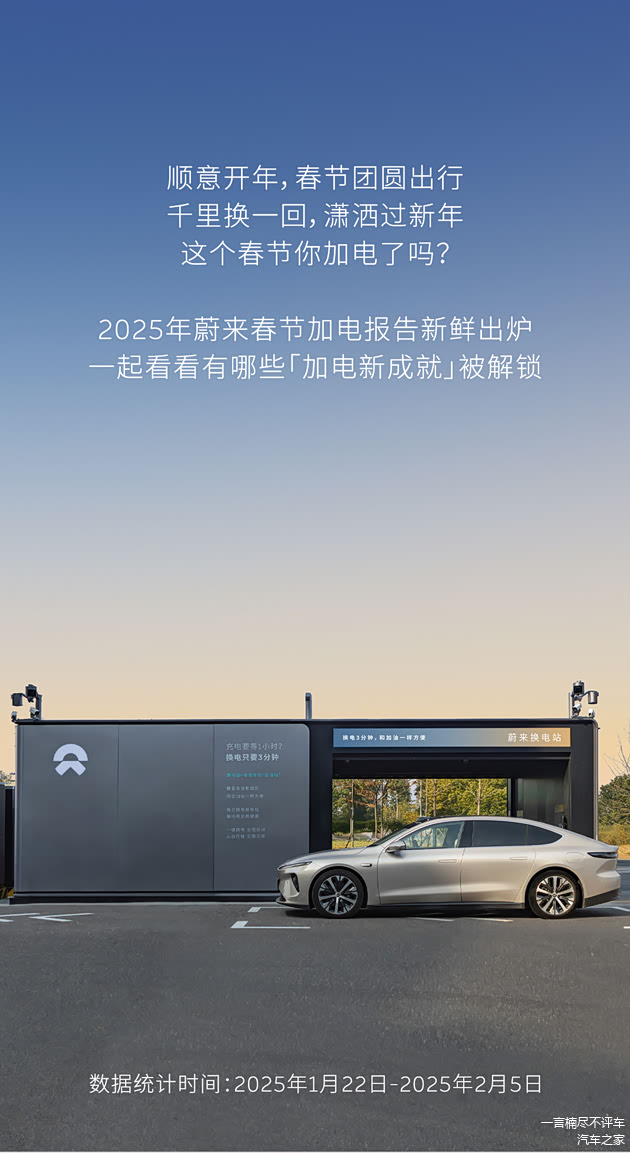 目前,蔚来汽车全系产品正推出“五年0息”等大量优惠政策,相信将有更多用户能够在下一个春节感受到换电这个补能方式最优解带来的各种便利。