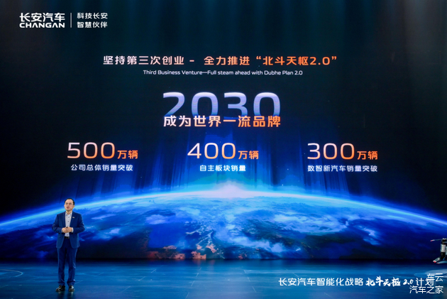 面向未来,长安汽车力争到2030年,公司总体销量突破500万辆,其中,自主板块销量400万辆,数智新汽车销量突破300万辆,成为世界级品牌。