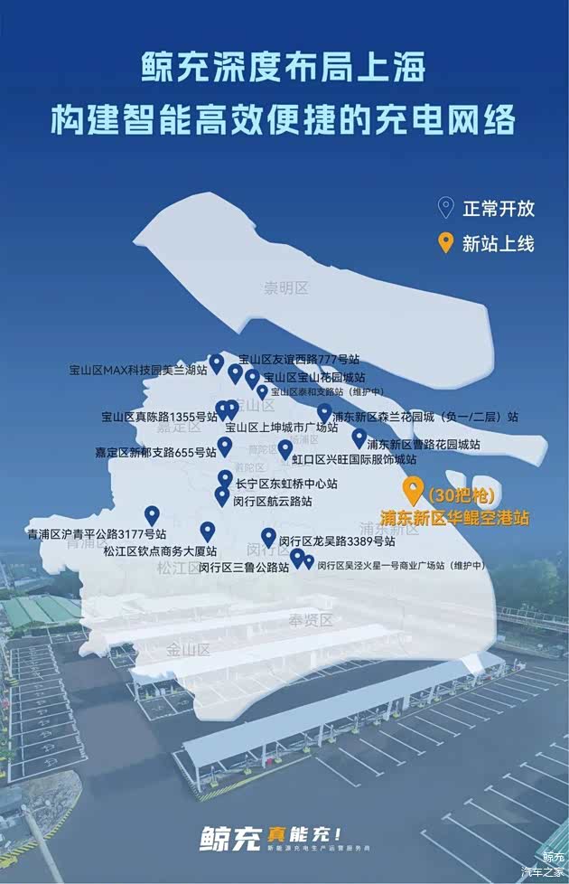 上海作为新能源汽车全国保有量领先的城市,其交通枢纽区域的充电需求正在快速增长。鲸充深度聚焦上海交通枢纽区域的充电网络建设,已在浦东国际机场、虹桥国际机场、上海站等交通枢纽沿线布局充电场站。同时鲸充也在上海城区、商场、园区等核心地段投建充电基础设施,致力于构建更智能、高效、便捷的充电网络,以满足上海新能源汽车用户在不同场景下的充电需求,享受无忧的充电体验!