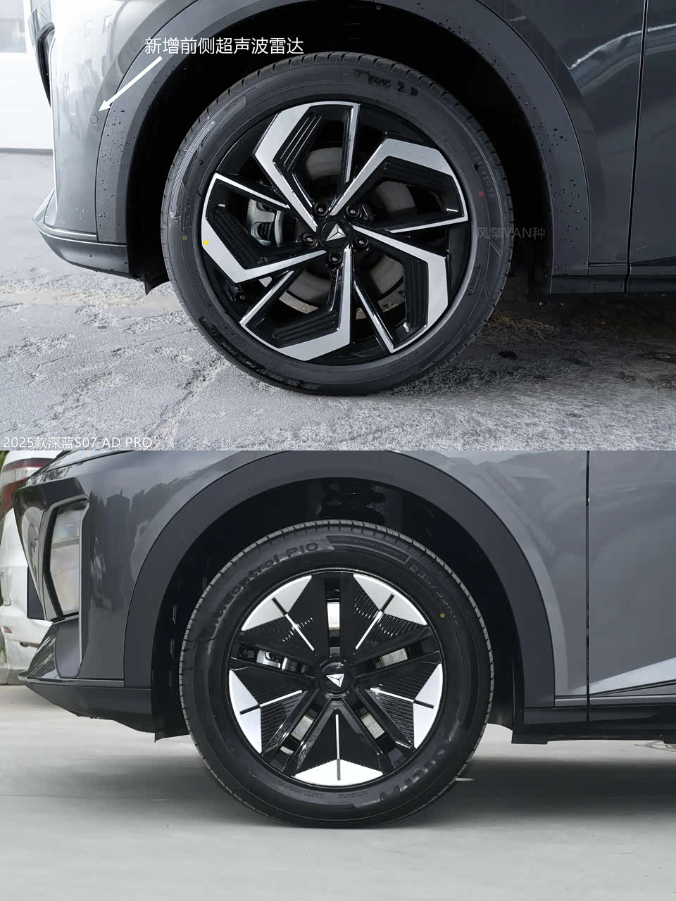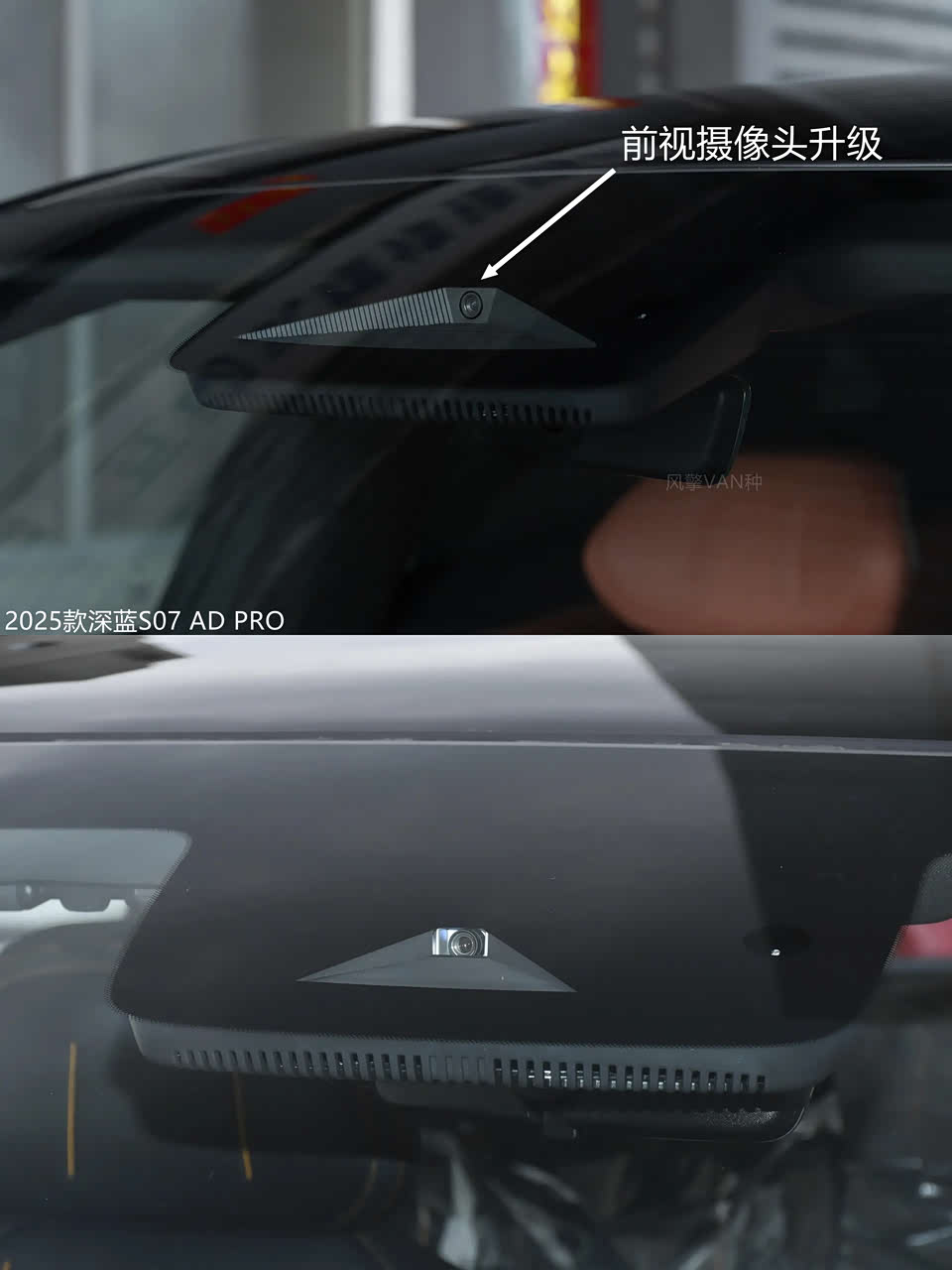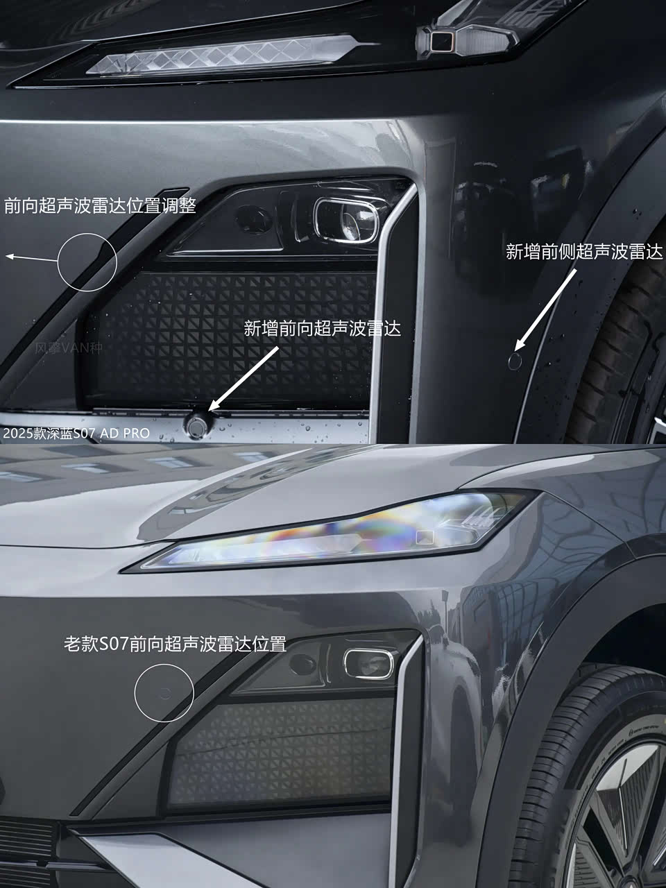 【硬件全面升级:2025款深蓝S07同角度对比】2025款深蓝S07日前迎来上市,作为年度小改款车型,2025款深蓝S07在售价不变的前提下标配了DEEPAL AD PRO智驾辅助系统,整车智驾硬件迎来全面升级,摄像头数量保持不变,超声波雷达增加6部,毫米波雷达增加2部,智驾硬件达到了5V5R12U,较老款深蓝S07标准版有明显提升,新增了高速智驾领航辅助NOA、城区智能变道以及离车泊入等功能。