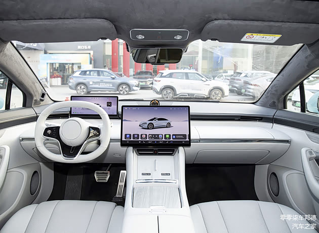 2025款鸿蒙智行智界S7中控台为环抱式布局,大量使用软性材质以及皮质材料,提升了座舱的豪华质感。多功能方向盘设计符合人体工程学,手感舒适,还提供了加热功能。座椅方面,智界S7采用了丝云座椅,静音电吸门/电弹门以及超纤麂皮绒顶棚的使用进一步提升了车辆的档次感。科技配置上,智界S7搭载了12.3英寸全液晶仪表和15.6英寸悬浮式中控屏,车机运行十分流畅稳定。