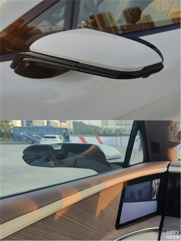 电子外后视镜造型很漂亮,恶劣天气下很实用,而且车内可以自定义调节视野范围