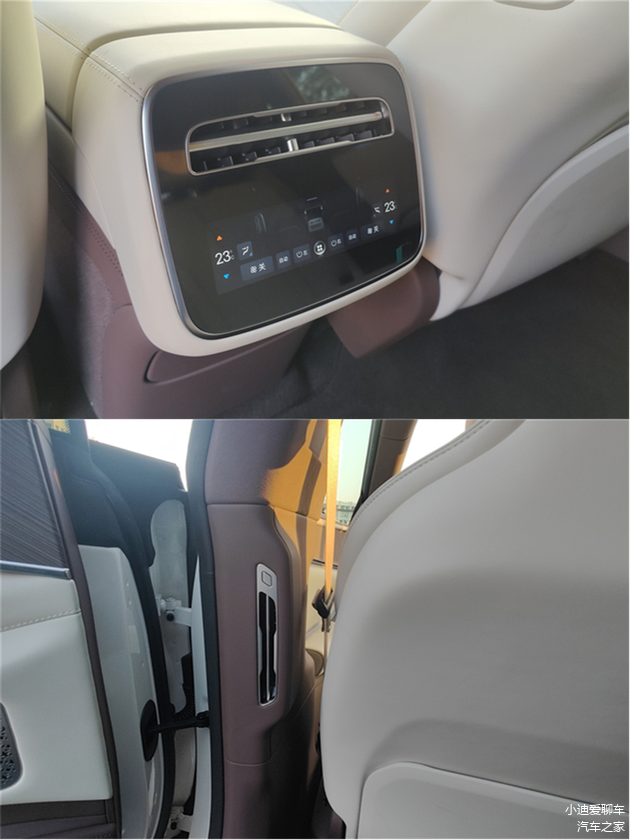 后排的空调面板设计很粗糙,但是出风口在B柱上,两侧各一个,值得好评