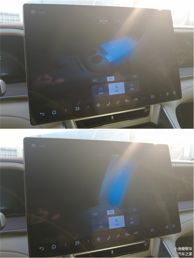 前排冰箱需要先在小触屏上解锁了才能开,主驾、副驾两侧都能开
