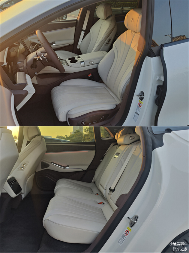 前后排的空间、皮料手感、座椅柔软度都很棒,只是坐垫略短