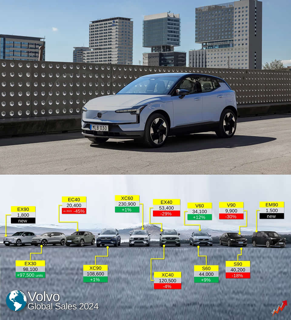 沃尔沃2024销量分布,欧洲EX30卖疯了