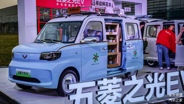 五菱之光 EV,尾部造型方正,和普通面包车仿佛,两侧采用了分体式大灯,下方为灰色护板。