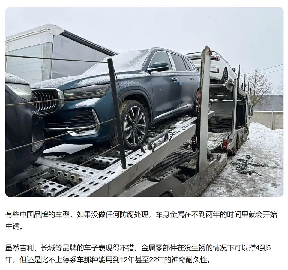 但是这件事不能比,像斯柯达、欧宝、标致、大众这些欧洲品牌基本上它们的金属耐腐蚀期限增加到了20年左右。您知道为什么差距这么大吗?因为中国车的更新换代太快。欧美国家换车频率基本是10年左右。而中国消费者在5年左右就会有60%的车主换车。