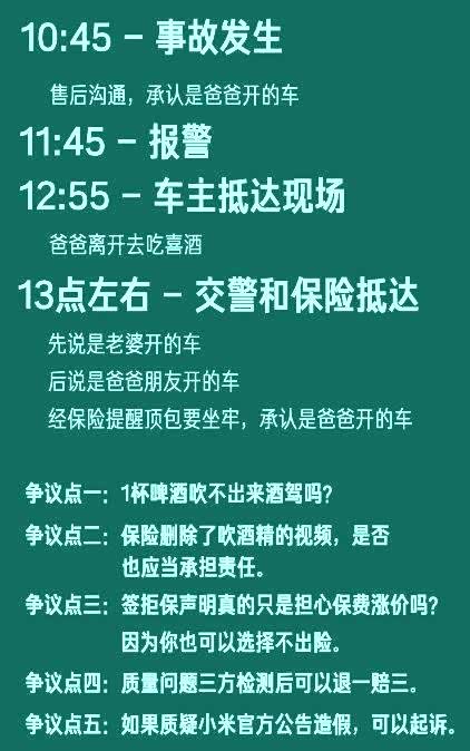 这件事不应该分开来看吗?如果是酒驾问题,可以由交警来处理,该扣分罚款就扣分返款。同时应该进行汽车质量鉴定,以确认小米SU7是否有质量问题。