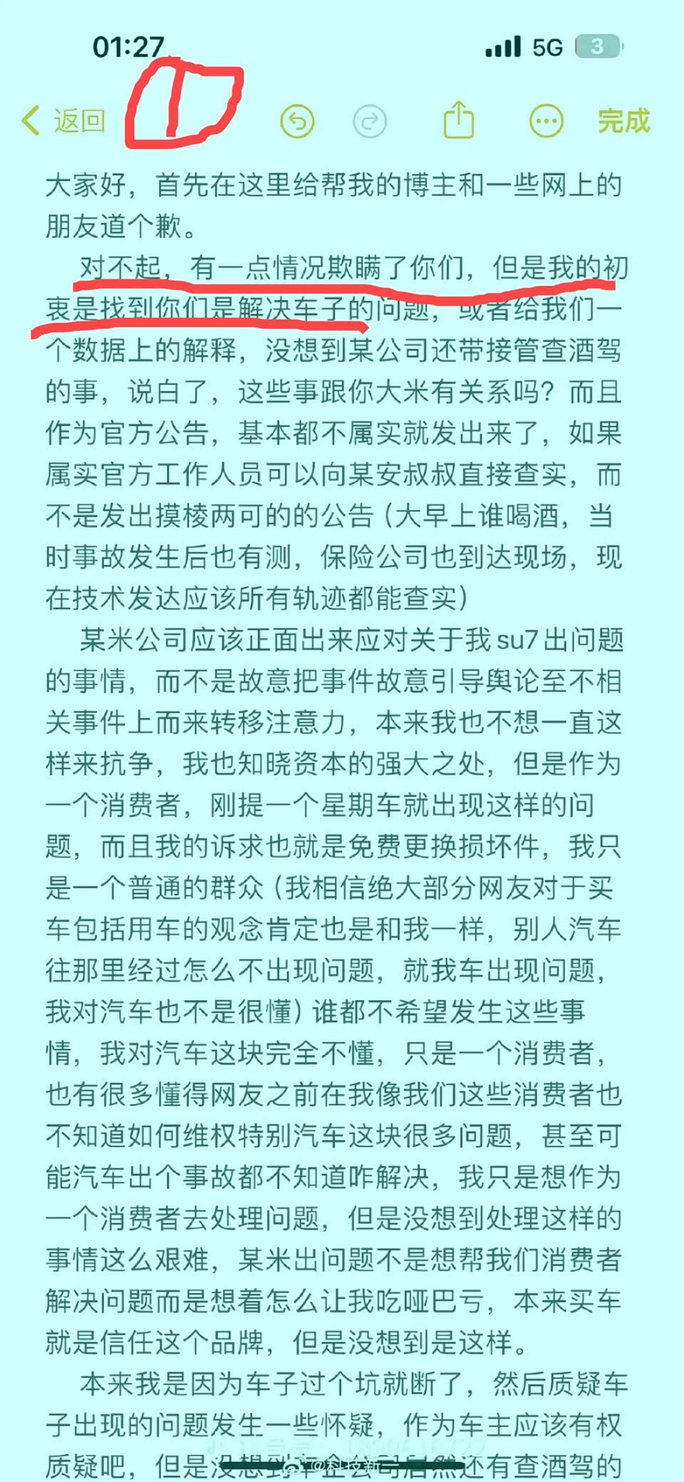 不过车主感觉不惑的是,明明自己质疑的是小米SU7质量问题,却被小米公关引导到酒驾问题上,导致自己家人受到牵连。