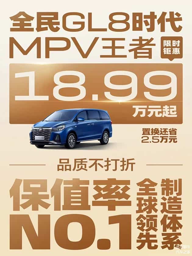 今日,别克品牌宣布旗下豪华MPV车型,别克GL8陆上公务舱推出新春钜惠限时价18.99万元起,可享置换补贴至高2.5万元(包含国家以旧换新补贴1.5万元和品牌置换补贴1万元)。别克GL8陆上公务舱一直秉承“入门即标杆,品质不打折”的理念,深受众多消费者的喜爱。