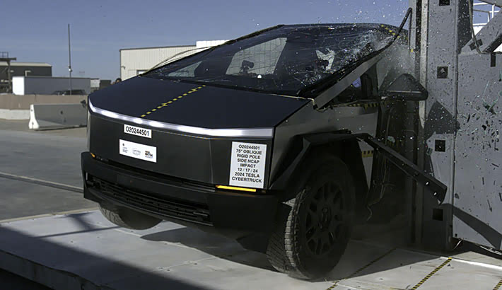 2025款特斯拉Cybertruck在NHTSA的安全测试中拿了一个五星的整体评价,测试中的大部分单项也都是五星,至少车内的乘员防护还是过硬的: