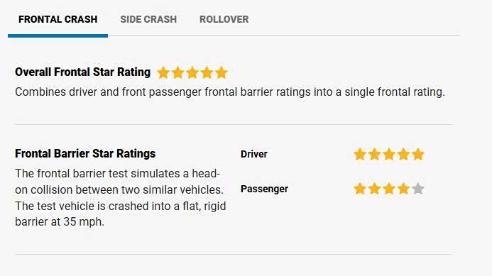 在35mph下的正面100%碰撞测试中,值得注意的是前排两个膝部安全气囊均未起爆,不过评分相对更低的副驾也拿下了四星;