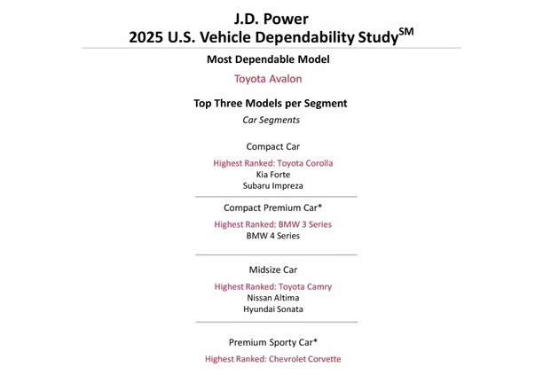 知名市场评测机构《J.D. Power》每年城市针对市场车辆进行可靠性调查,近日 2025 年美国 VDS 车辆可靠度调查出炉,品牌方面由 雷克萨斯 连续第 3 年拿下可靠度最高殊荣,非豪华品牌则以 别克 的可靠度最佳,单一车款的最大赢家为 丰田 集团。