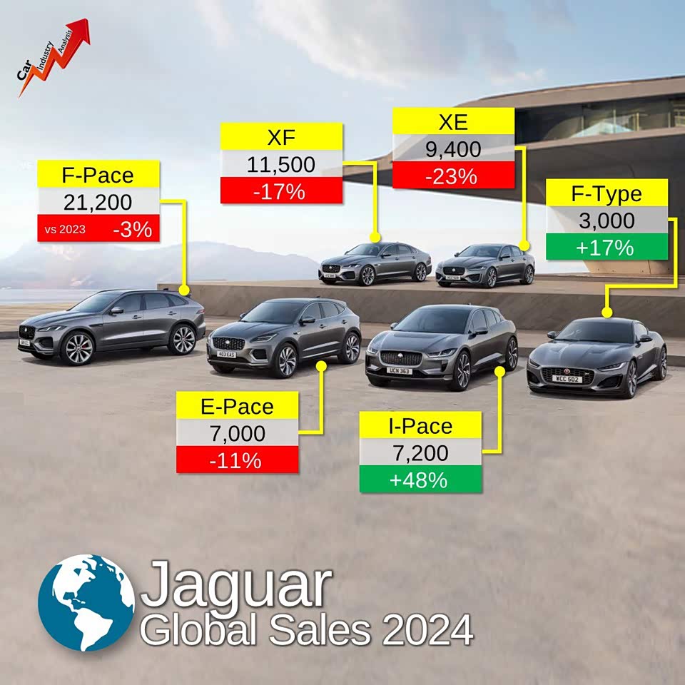捷豹2024车型销量分布,一共只卖了5.93万辆