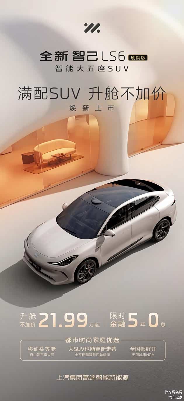 在竞争白热化的 20 万级纯电 SUV 市场,各车企为争夺份额各显神通,就在今天,全新智己 LS6 剧院版震撼上市。