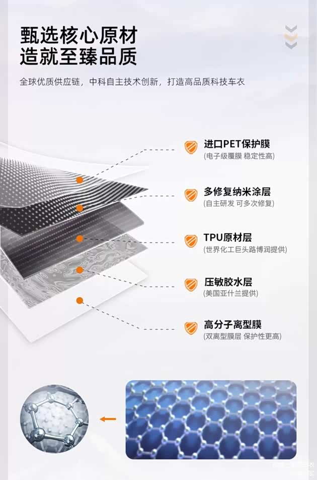 隐形车衣的材质是决定其性能和品质的关键因素。目前市场上主流的隐形车衣材质主要有 PVC、TPH 和 TPU。PVC 材质价格较为低廉,但质地较硬,容易发黄、变脆,拉伸性和抗刮性较差,使用寿命相对较短。TPH 是在 PVC 基础上改良的材质,虽然在一定程度上改善了发黄问题,但其综合性能仍不如 TPU。TPU 材质具有高弹性、高耐磨性、抗紫外线、不易发黄等优点,是目前隐形车衣的最佳材质选择。智博士隐形车衣采用的就是优质 TPU 材质,能够为你的爱车提供全方位、持久的保护。