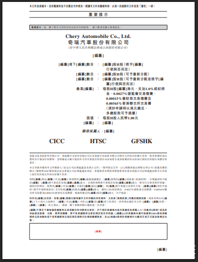 车见万宜讯—2月28日,据港交所披露易显示,奇瑞汽车股份有限公司向港交所提交上市申请书,中金、华泰及广发为联席保荐人。