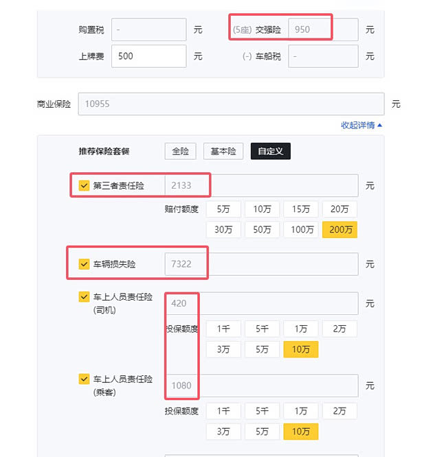 你以为你除了贷款就没其他开支了,不好意思,不存在的,这款车的保险费也不便宜,交强险950元,这个谁都跑不掉,而三者险200万是2133元,而车损险是7322元,外加司机乘客险1500元,恭喜你,你的这辆车一年的保险费是10955元加交强险950元,一年下来11905元,分摊到每个月去之后,你最起码需要993元的保险费来支出。