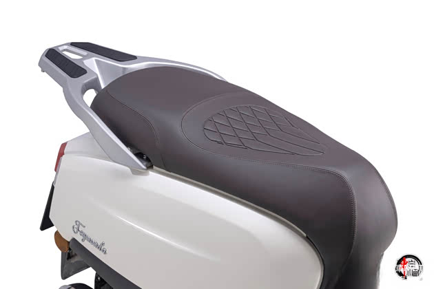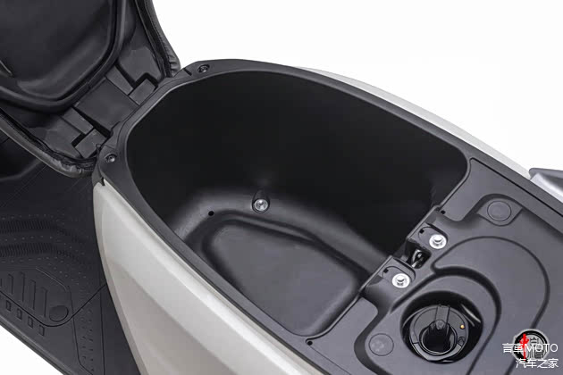 紧凑小巧的车身结构,车身长度为1820毫米,轴距为1255毫米,配合107公斤的整备质量,使其具备了灵活的操控性。复古风格座椅设计,宽大的坐垫采用高密度回弹材料,保证了驾乘的舒适性。765毫米座椅高度,对于女性而言也没有驾驭难度。储物方面提供了前开放式储物格以及中央置物挂钩,搭配纯平地板,满足了日常代步通勤的储物需要。此外,座桶空间容量达20升,可容纳一顶头盔。铝合金后货架也可进一步拓展整车的储物能力。