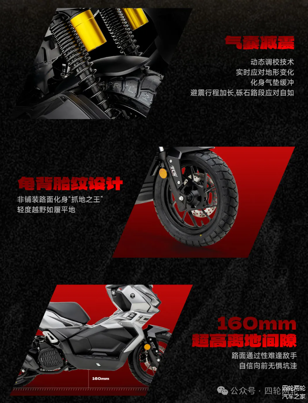 动力搭载单缸水冷4气门150CC引擎,最大功率11.6千瓦,最大扭矩14.7牛米,该款动力平台全球销量已突破35万台,770MM的座高对于大众消费者非常友好,136公斤的轻量化车重,160MM的最小离地间隙,以及原车出厂就自带的龟背全地形轮胎,和气囊后减震,一齐为这台车带来了无限的可玩性。