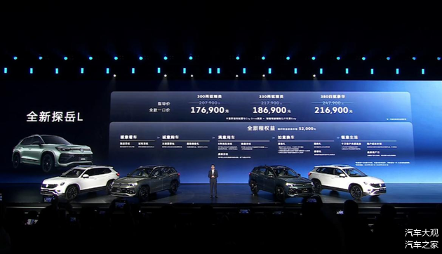 一汽-大众给出的答案是否定的。3月1日,一汽-大众推出了全新探岳L,新车共推出300TSI、330TSI、380TSI三种动力配置共3种车型,售价区间为20.79万-24.79万元。同时,一汽-大众还特别为全新探岳L推出全款一口价政策,在政策优惠下三个配置的售价区间为17.69万-21.69万元,还可选装舒适性配置丰富的City包和驾驶辅助功能Easy包。