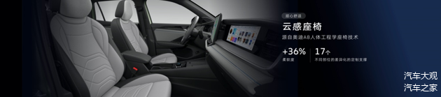 此外,全新探岳L还将二排的地台高度降低,两侧的乘员可以随便翘二郎腿,中间乘员也能有舒适的乘坐和上下车体验。舒适度方面,全新探岳L配备了专为中国用户研发的云感座椅,座椅柔软度提升了36%,还有着Audi A8同款人体工学座椅设计,提供身体从靠背到大腿共 17 处不同部位的差异化定制支撑,即使长途驾驶也不会感到疲惫。动力方面,全新探岳L延续了成熟可靠的动力组合,提供1.5T发动机以及高/低功率的2.0T发动机,能满足不同消费者对于动力的需求。其中,高功率版2.0T动力功率为162kW,动力强劲,爆发力十足,能够满足追求驾驶激情消费者的需求。传动系统方面,全新探岳L全系匹配7速双离合变速箱,这款变速箱换挡逻辑清晰,响应迅速,能够根据驾驶者的操作意图和路况,迅速、准确地选择合适的挡位,实现快速、平顺的换挡过程,为驾驶者带来流畅的驾驶感受。