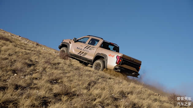 再有,悬架系统同样值得关注,为了面对越野路况可以更从容,越野版皮卡通常会升级避震器和上下支臂,这样可以提升车辆的稳定性、操控性和舒适性,并且还能一定程度上抬高车辆的离地间隙。而在悬架的选择上火星9越野刀锋版同样不令人失望:前双叉臂+后多连杆的悬架配置,双叉臂式独立悬架出色的横向刚度、卓越的抗侧倾能力、强大的抓地力以及清晰的路感反馈。匹配多连杆独立悬架在横向刚度与抗侧倾的突出性能,有效缓冲坎坷路况所带来的颠簸,有效提升了驾车的舒适性。可谓兼顾了性能与驾乘舒适,开辟了舒适越野的新纪元。同时在轮胎的加持下调整悬架,使得接近角和离去角也增大至30/27°,大大提升了车辆的通过性,可谓如虎添翼,纵横全域。